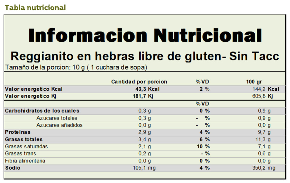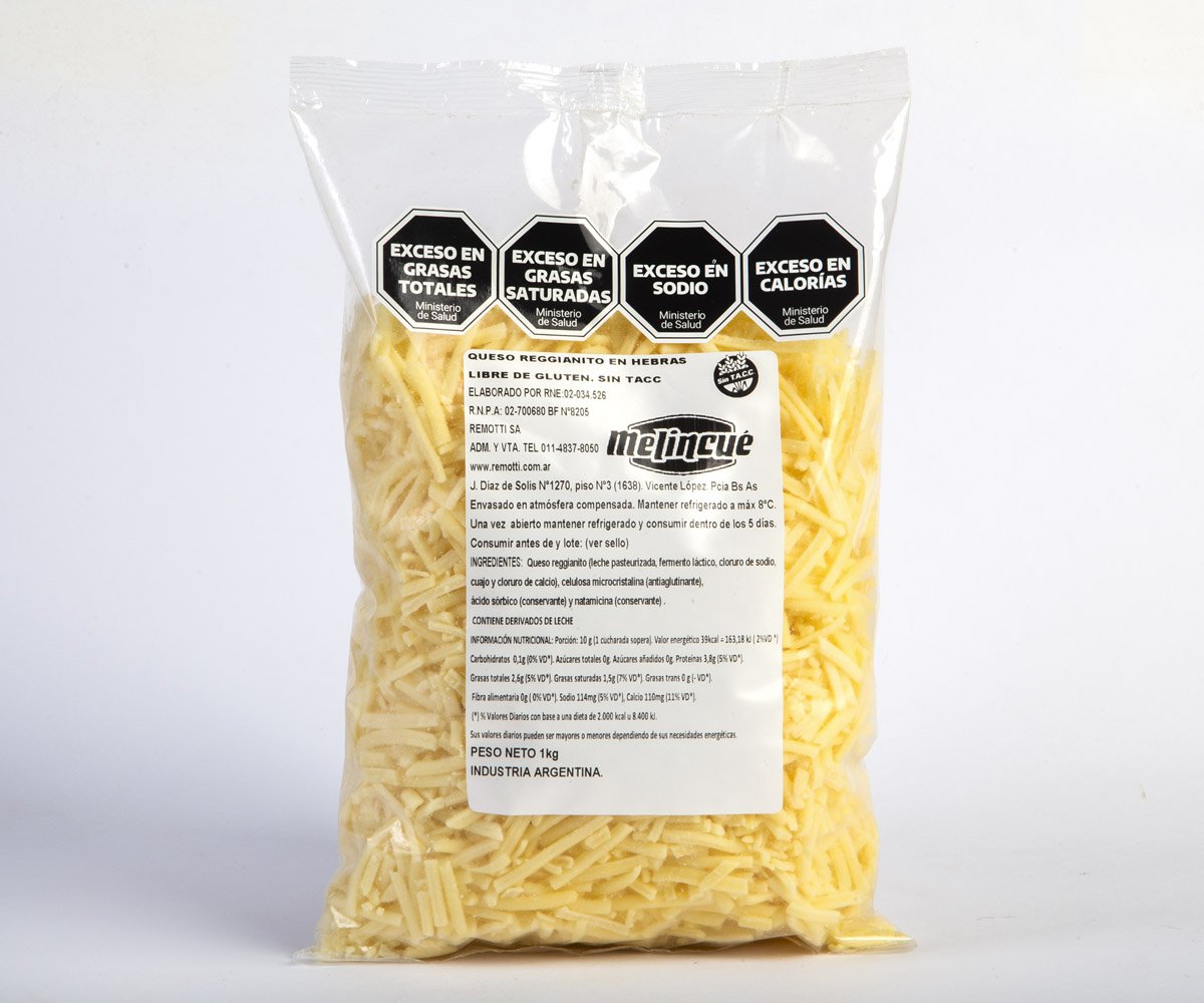 Queso Reggianito en hebras. Libre de gluten. sin TACC. Apto para Celíacos Conservar refrigerado 4-8ºC Bolsa por 1 kg. aprox. Venta al peso Información NutricionalClick para Ampliar Elaborador:R.N.E.: 02-033173 / SENASA: B-I-05187 Más Quesos Rallados Reggianito Rallado 120gr Reggianito Rallado 40gr Reggianito Rallado Hebras 135gr Reggianito Rallado 1/2 kg Reggianito Rallado Hebras 1/2 kg Reggianito Rallado 1kg Reggianito Rallado Hebras 1kg Reggianito Rallado Hebras 5kg Otras variedades de Quesos Blandos Semi Duros Duros EspecialidadesDescubrí todos nuestros sabores Crema/Manteca Frescos Industrial Leche Dulces
